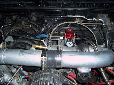 ![]() Fuel system is just about there. I went with the Aeromotive Fuel Pressure regulator and an running -6 fuel lines to the rails. I will be running -8 to the tank next, and then changing the fuel rails to run in parallel. Now I will be able to tell if there is an issue with the fuel pressure at a glance... Finally. This could've saved me a lot of guess work earlier. |